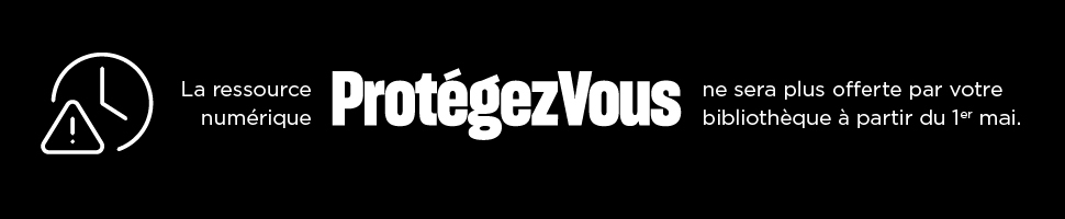 L’accès sera maintenu jusqu’au 30 avril 2026 inclusivement. Nous comprenons les inconvénients occasionnés; cette situation est toutefois indépendante de la volonté de votre bibliothèque. Nous vous invitons à consulter le magazine Protégez-Vous sur place, en bibliothèque!